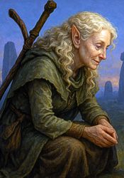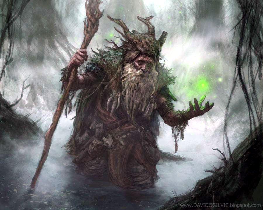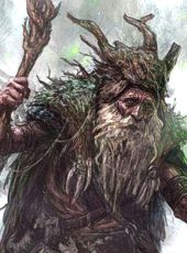 Le visage d’Eldros est marqué par les années, son dos est vouté et sa longue barbe grise s’étend sur son torse, mais il a toujours le regard lumineux. Sa coiffe, composée de bois et de cornes tordues, et sa cape, faite de mousse, de lierres et de branches entrelacées, semblent avoir poussé sur lui, comme s’il faisait partie intégrante du marais. Il ne craint ni les maladies ni le froid, et évolue aisément dans les tourbières et les eaux glacées du marais.