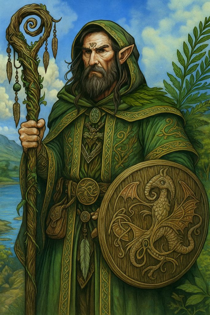 Daffyd est le fruit d'un grand amour entre une elfe des bois et un mage humain qui utilisait sa magie pour venir en aide à la faune et à la flore. N'ayant pas hérité de l'intelligence de son père, mais doté d'un fort charisme et d'une grande sagesse, Daffyd s'est tout naturellement tourné vers le druidisme. On le prend parfois pour un doux rêveur, mais son amour de la nature ne l'aveugle pas aux dures réalités de la vie ; après tout, les humains et les demi-humains sont des prédateurs. Ceux qui chassent pour le sport et non pour apaiser leur faim provoquent sa colère, et ceux qui ignorent ses avertissements risquent de se souvenir longtemps de leur impudence.