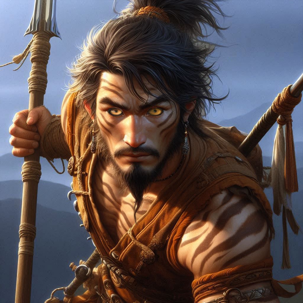 Lorsqu’il avait quatre ans, des humanoïdes tuèrent les parents de Jegsan et s’amusèrent à lacérer son corps, de manière à lui infliger de longues cicatrices censées évoquer les rayures d’un tigre. Ce traumatisme l’a rendu cruel, voir même sadique ; il réserve à ses ennemis, en particulier les humanoïdes résidant dans les collines Yecha, une mort particulièrement lente et douloureuse. En fait, il n’y guère que pour les animaux que Jegsan éprouve de l’affection. C’est un solitaire qui vit à l’écart des clans nomades et qui n’a pas de goût pour la diplomatie.