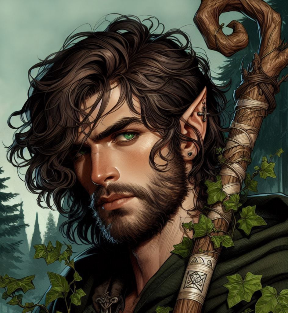Aruthir est un demi-elfe d’une beauté singulière, avec de longs cheveux ébouriffés et un regard mystérieux et captivant. Extraordinairement vaniteux, il se glorifie d’avoir découvert un rituel magique qui permet de doter un végétal d’une intelligence quasi-animale, le rendant capable de réagir différemment selon les créatures qu’il distingue. Il a notamment offert à une bande d’elfes du Bois de la Hache une porte végétale qui reconnaît une odeur corporelle spécifique aux elfes des bois, se démêlant alors pour les laisser passer.