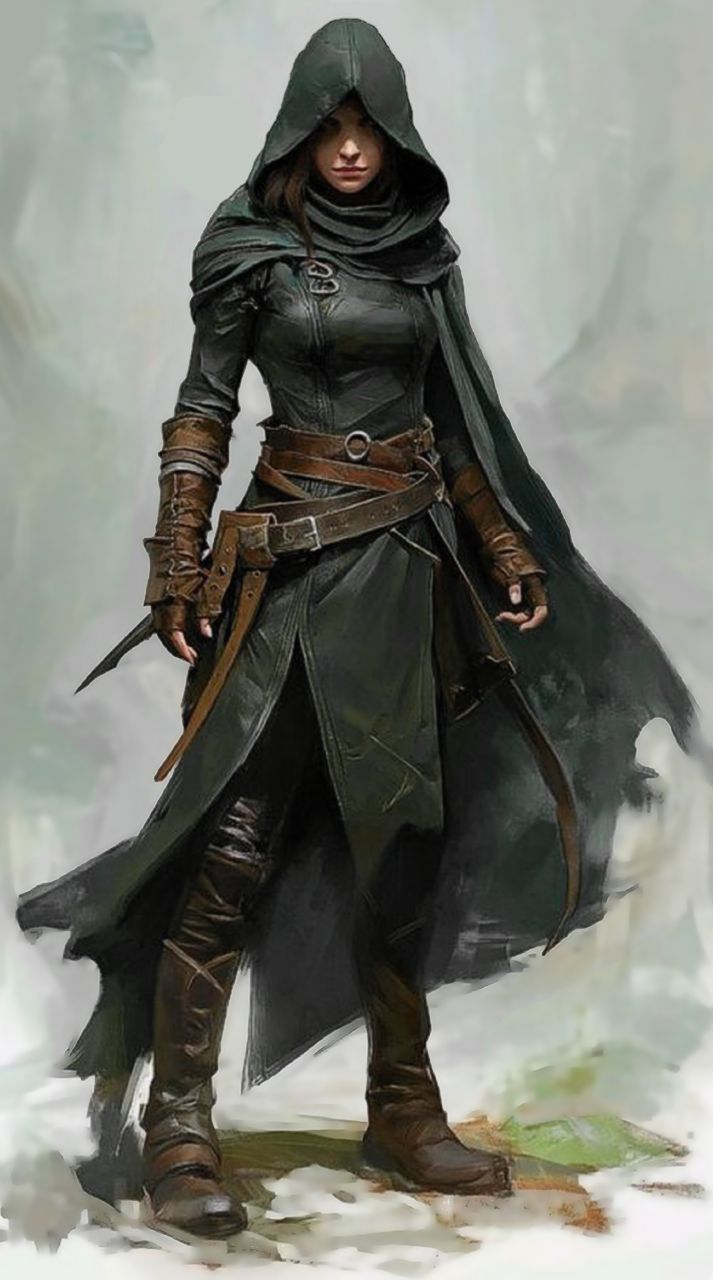 Il est vrai que Reselda n’a pas encore trente ans et montre une inclination certaine vers le bien, qu’elle a un caractère fougueux et qu’elle attache beaucoup d’importance à son apparence, mais cela ne l’empêche pas de s’acquitter parfaitement des tâches druidiques qui lui incombent. Elle peut compter sur l’appui de nombreuses créatures féériques et de tous les rôdeurs de la région. C’est une femme fière de sa beauté, de taille moyenne (1m63), le front ceint d’un diadème serti d’une grande émeraude, ses cheveux noirs et son armure (faite sur mesure) teintés en vert pour s’accorder à la couleur de ses yeux.
