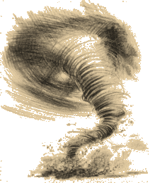 Ce sort génère un tourbillon de vents hurlants qui circule au gré du prêtre à une VD maximale de 6 tant qu'il reste en contact avec le sol (ou l'eau). Le tourbillon se déplace toujours après toutes les créatures, et il est bien souvent possible de l'éviter en restant loin de lui. S'il quitte la portée du sort, il se met à se mouvoir de manière aléatoire pendant 1d3 rounds (ce qui peut éventuellement mettre les compagnons du prêtre en péril) puis se dissipe.
